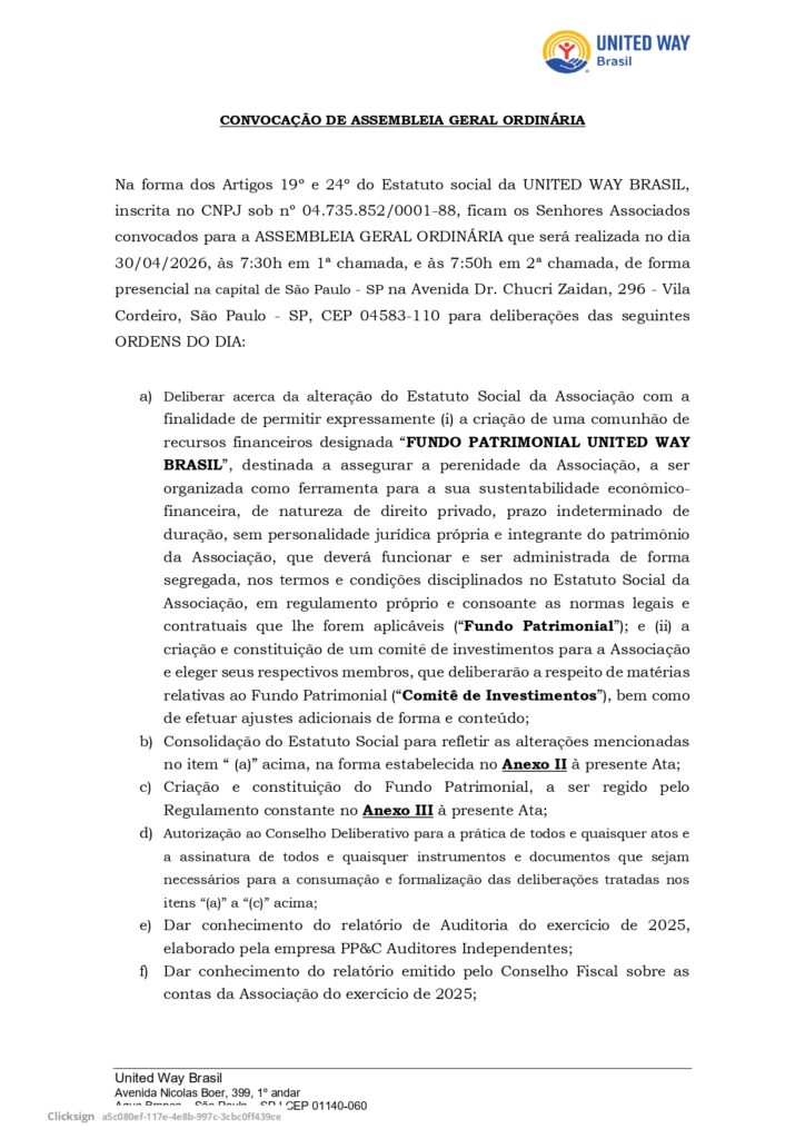 Veja abaixo o documento oficial com mais detalhes sobre a Assembleia Geral Ordinária.
